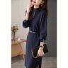 ニットワンピース|エレガント・ヘップバーン・ハイネック・レトロ・ミドル丈・マニアック・透かし彫り|undefined