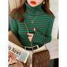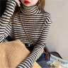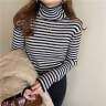 吉ニットセーター|レディース・タートルネック・ストライプ柄・インナー・秋冬用・裏起毛・おしゃれ